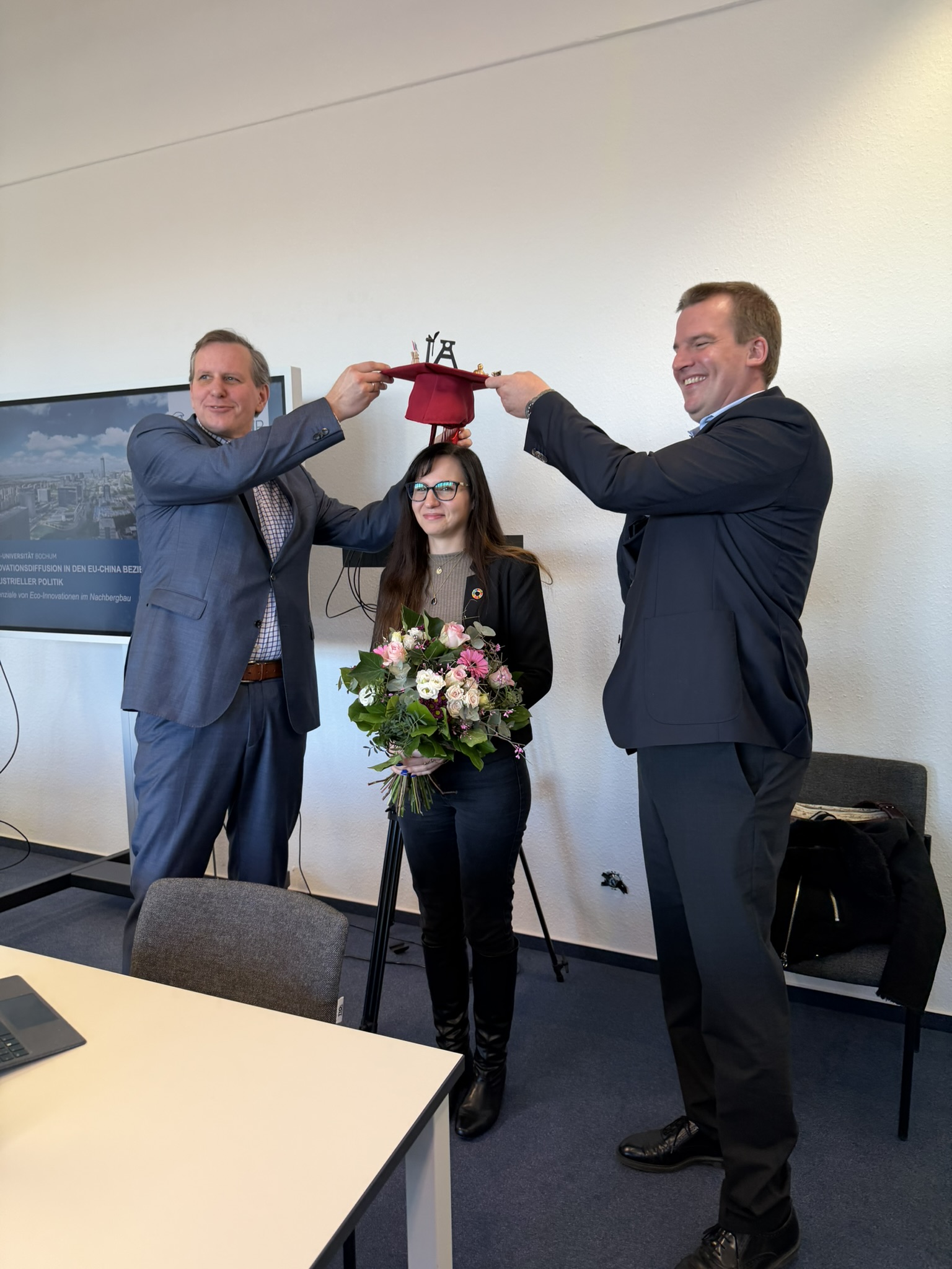 Julia Haske, Leiterin des Forschungsbereichs Land Use & Transition am FZN, hat ihre Disputation erfolgreich bestanden und ihr Promotionsverfahren an der Ruhr-Universität Bochum somit abgeschlossen. Die kooperative Promotion mit der Ersteinschreibung in der Internationalen Politischen Ökonomie Ostasiens an der Fakultät für Ostasienwissenschaften an der RUB und einer Zweiteinschreibung an der THGA im Geoingenieurwesen und Nachbergbau zeichnet sich hierbei durch einen internationalen wie thematisch hochaktuellen Blick aus.